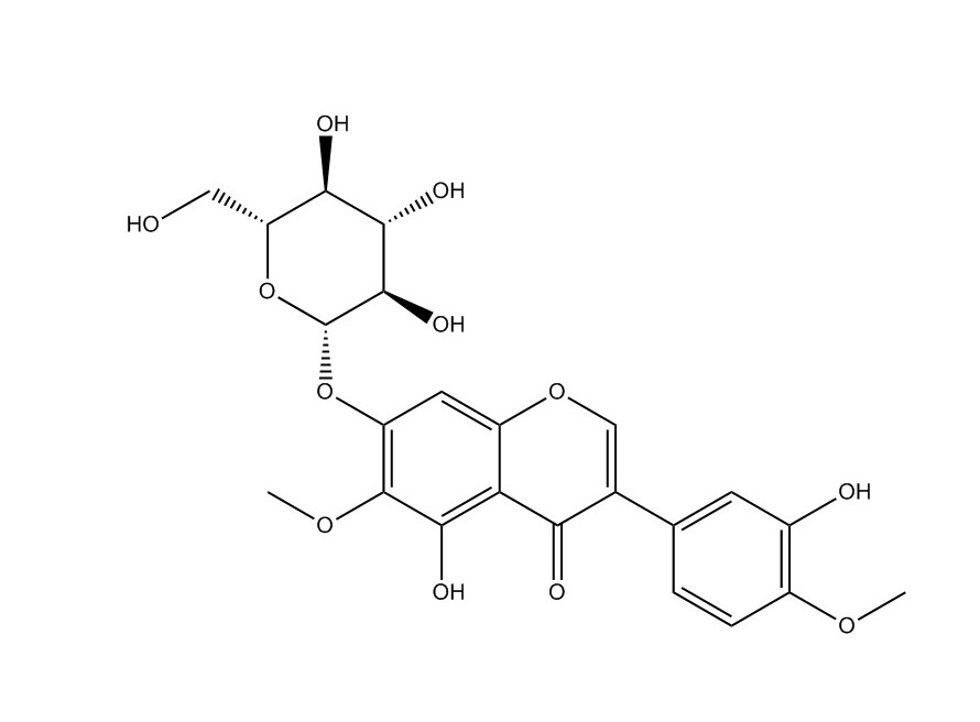 【英文別稱】 7-(β-D-Glucopyranosyloxy)-5-hydroxy-3-(3-hydroxy-4-methoxyphenyl)-6-methoxy-4H-1-benzopyran-4-one