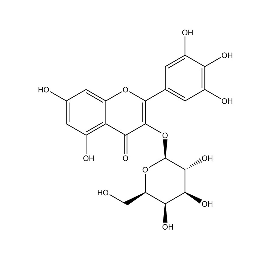 【英文別稱】 5,7-dihydroxy-3-[(2S,3R,4S,5R,6R)-3,4,5-trihydroxy-6-(hydroxymethyl)oxan-2-yl]oxy-2-(3,4,5-trihydroxyphenyl)chromen-4-one