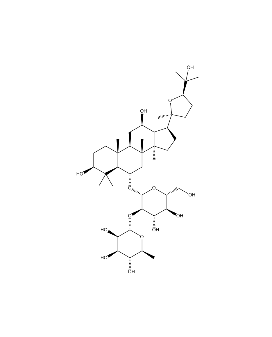 【英文別稱】 (3b,6a,12b,24R)-20,24-Epoxy-3,12,25-trihydroxydammaran-6-yl 2-O-(6-deoxy-alpha-L-mannopyranosyl)-beta-D-glucopyranoside
